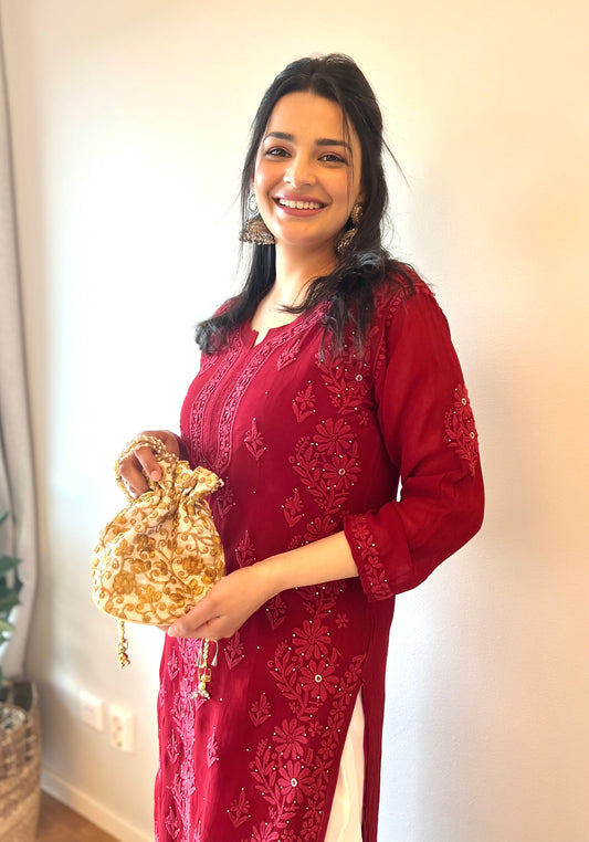 Scarlet Elegance - Viscose Georgette Handcrafted Chikankari Kurti