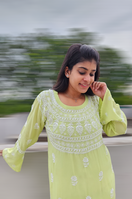 Arctic Charm - Pure Cotton Hand Embroidered Chikankari Short Top