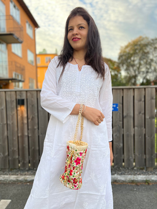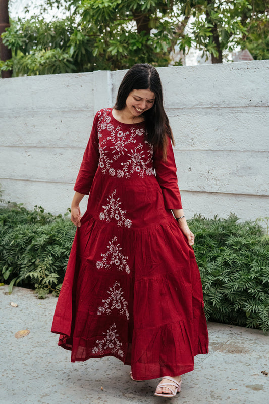 Scarlet Splendor - Pure Cotton Chikankari Kurti