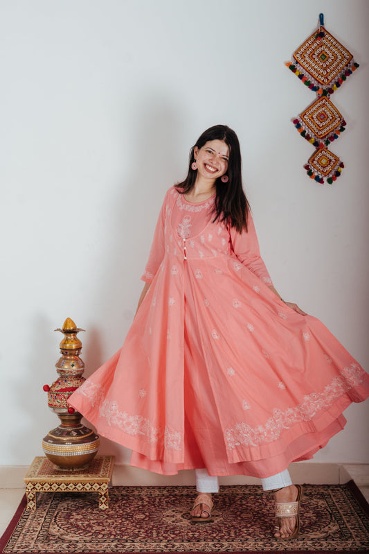 Rose Blush - Mul Chanderi Chikankari Kurti