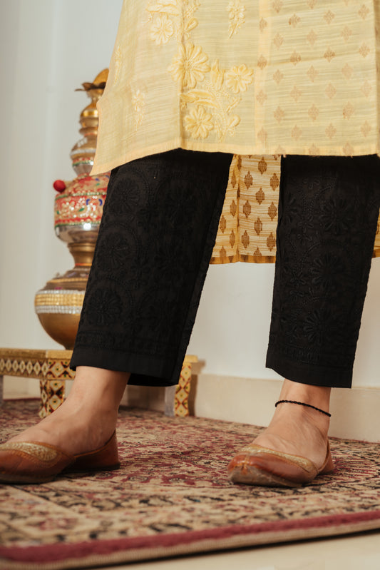 Aravali - Cotton Hand Embroidered Chikankari Straight Pants