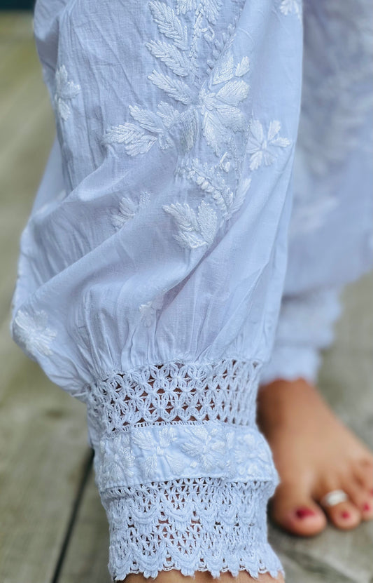 Ziba - Cotton Hand-Embroidered Chikankari Afghani Pants
