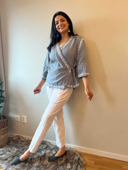 Ashen Charm - Hand Embroidered Chikankari Shrug Style Short Top