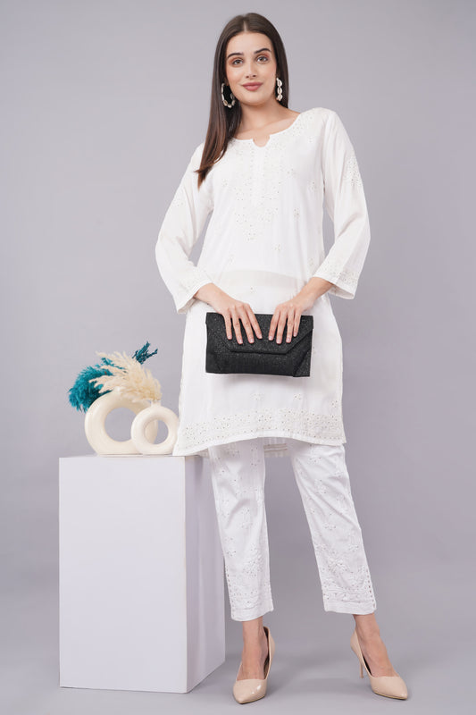 Pearl Essence - Premium Modal Chikankari Short Top