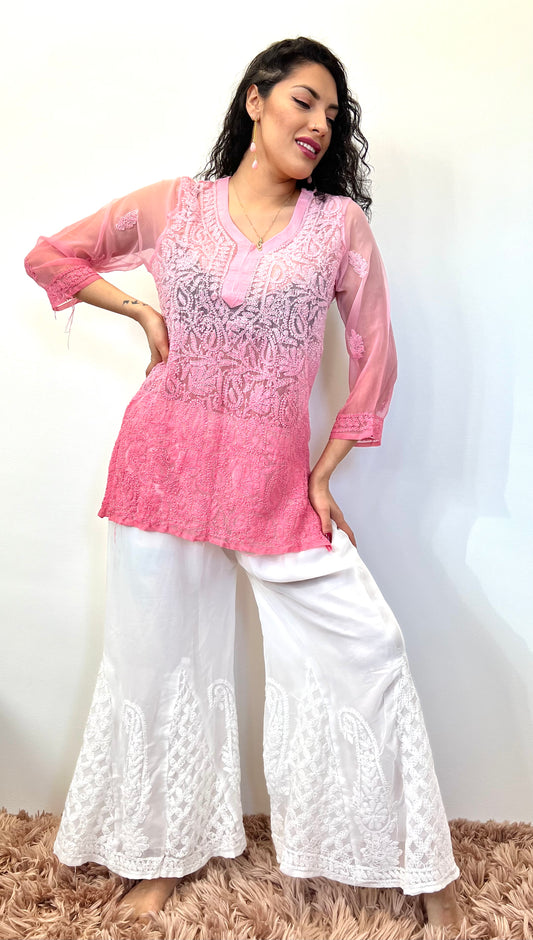Blush Fusion - Viscose Georgette Hand Embroidered Chikankari Short Top