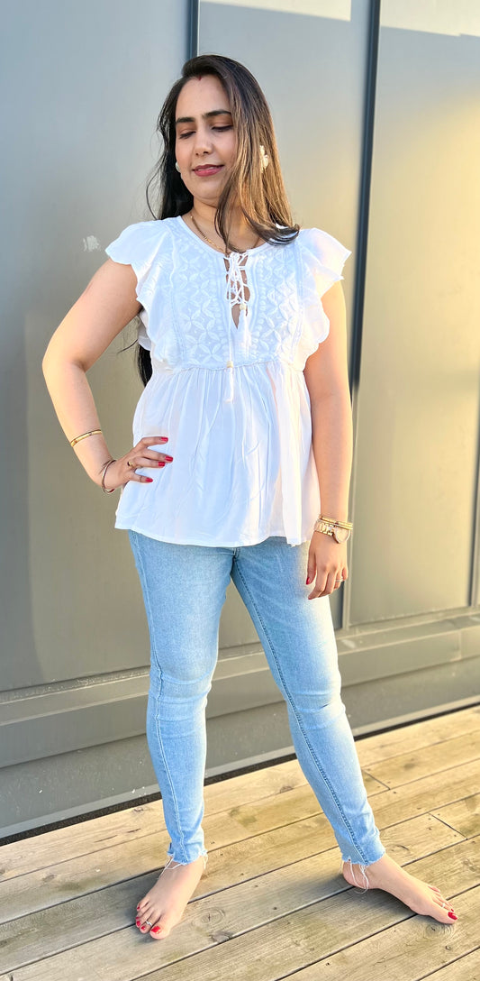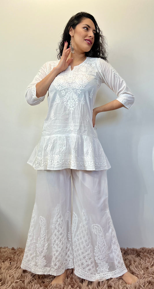 Arctic Charm - Pure Cotton Hand Embroidered Chikankari Short Top