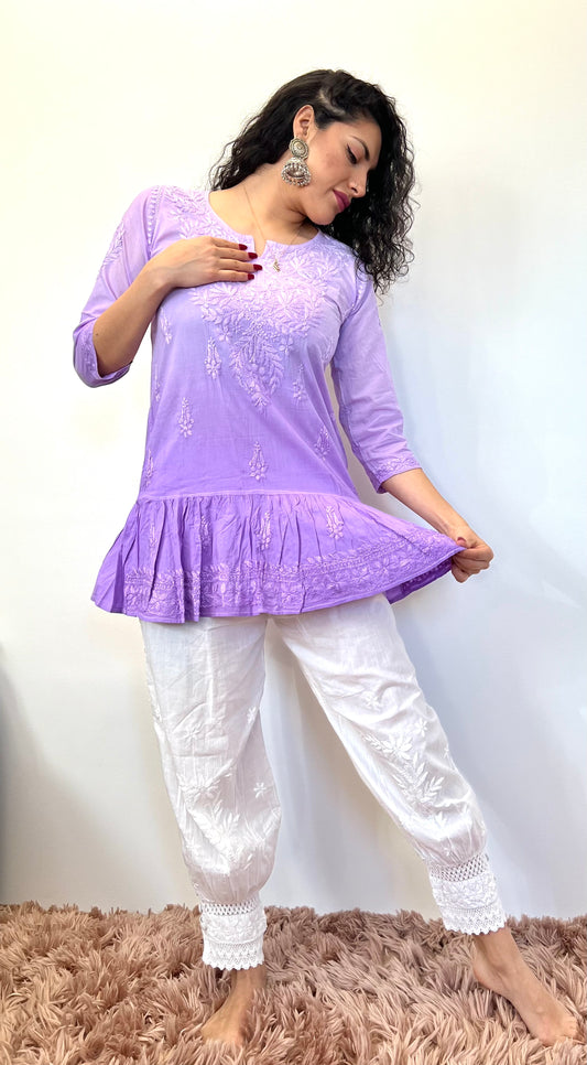 Lavender Luxe - Pure Cotton Chikankari Short Top